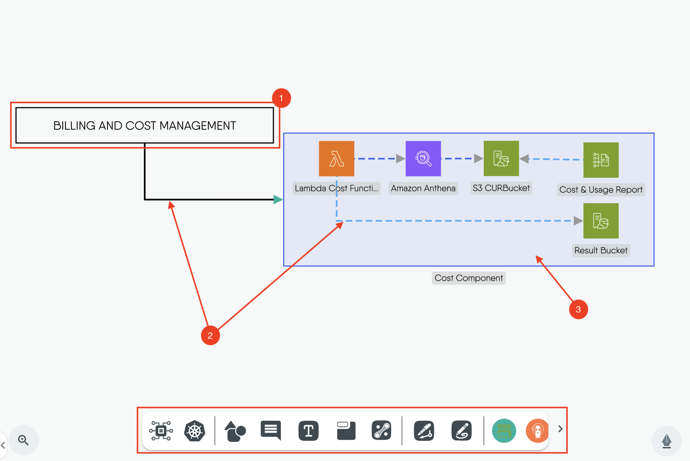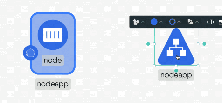 Components are represented by various shapes and icons that effectively illustrate their roles in the infrastructure. These icons are designed to intuitively convey their functions, making them easy to identify. Users also have the flexibility to customize these icons to suit their preferences, enabling a more personalized design experience.